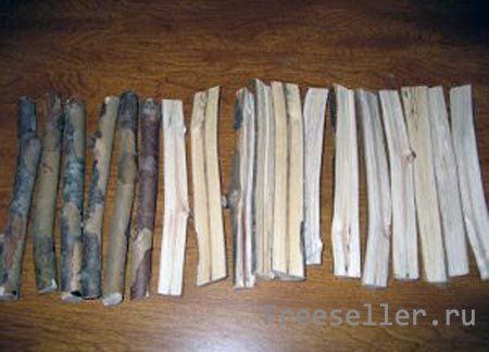 1) Возьмите самые прямые веточки и разрежьте их на две половины (резать нужно вдоль) с помощью ручной пилы. Если такие ветки слишком длинные - их всегда можно укоротить. Старайтесь сделать так, чтобы эти половинки лишь на сантиметр были выше верхнего края банки. Но не больше.