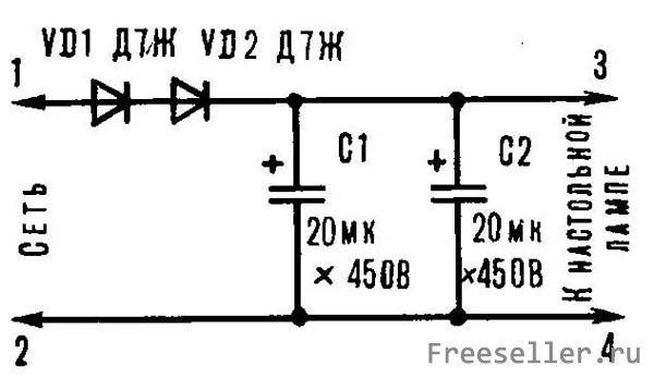 Но стоит запитать их через простое устройство, схема которого показана на рисунке 1, лампочки будут светиться в полный накал.