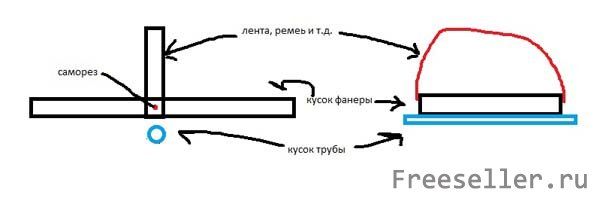 приспособления возьмите кусок фанеры 8-10 мм, кусок ленты, ремня или прочего материала, оказавшегося под рукой. и 2 самореза.