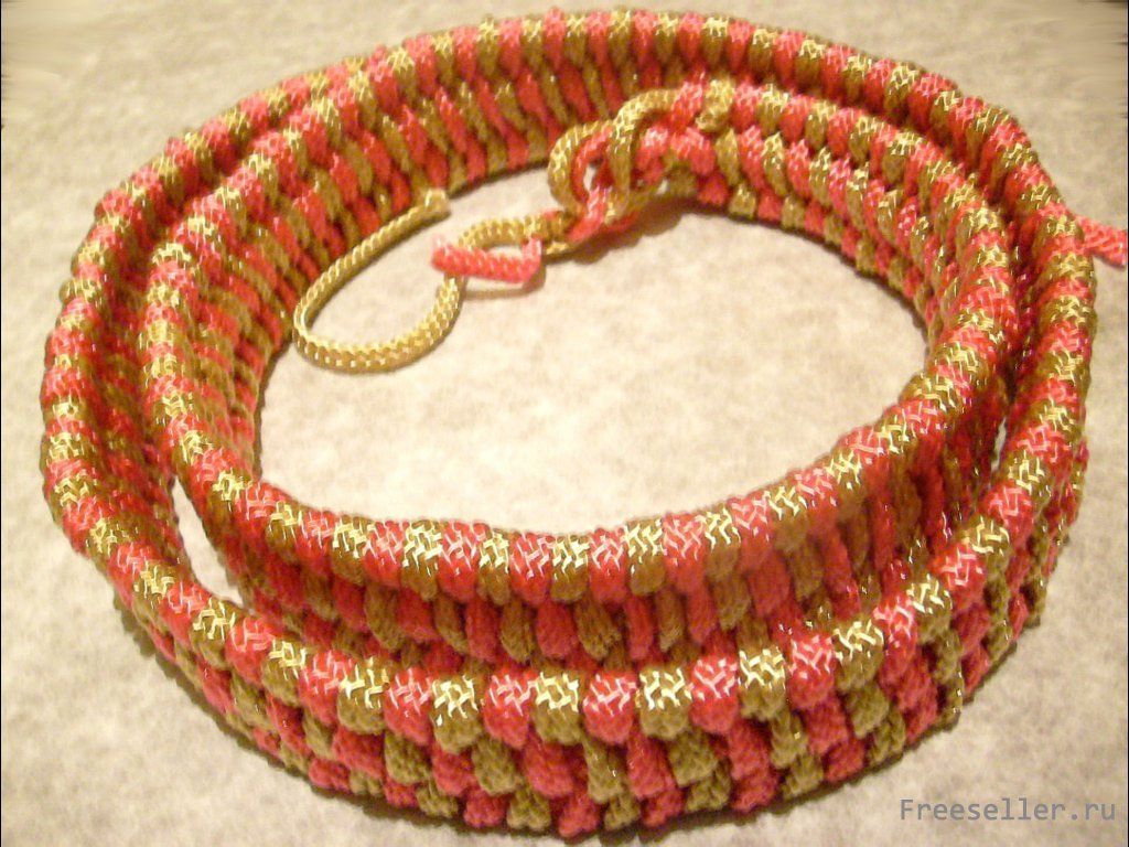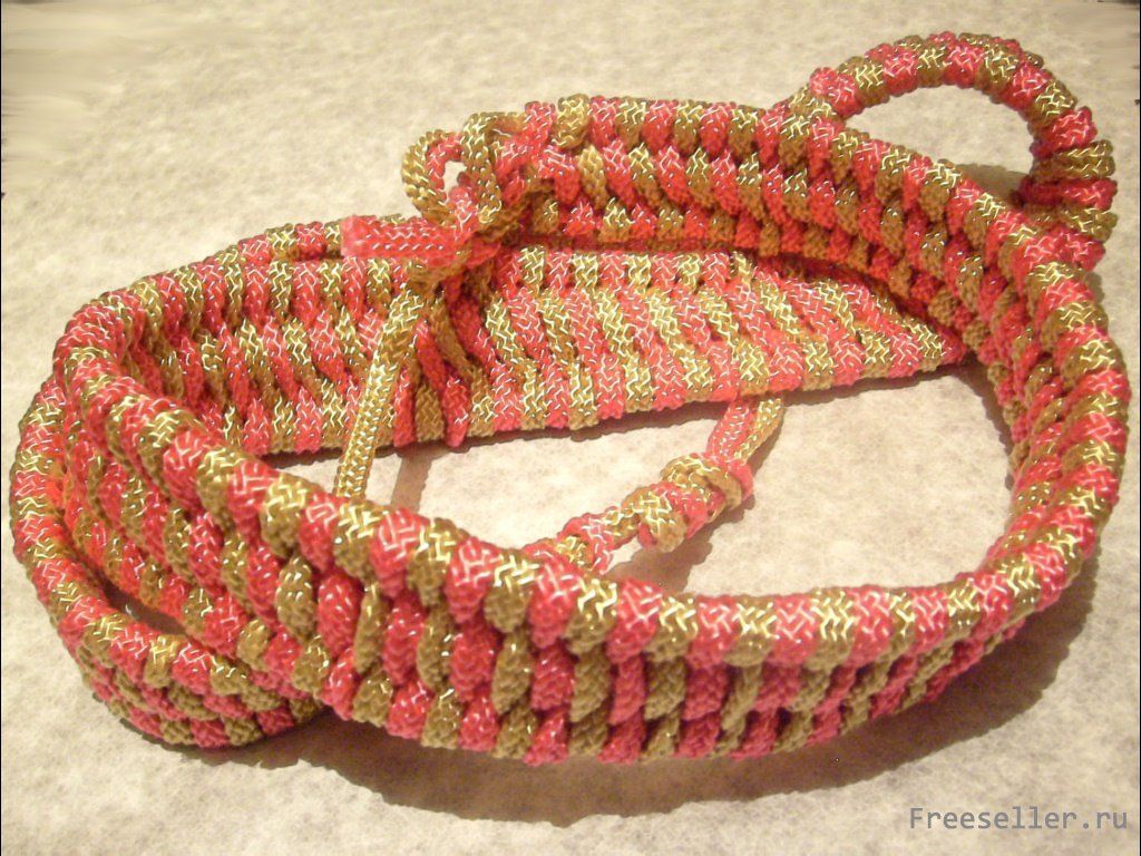 6. Изделие готово.К такому поясу лучше подобрать золотистую или другую броскую пряжку. А чтобы узлы на концах не натирали талию, их можно пришить не вовнутрь, а наружу. Для этого сами узлы должны быть, конечно, завязаны аккуратно, служить дополнительным декоративным элементом.