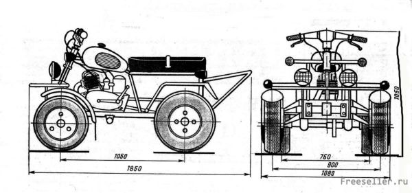 Универсальный вездеход, который я разработал и сделал своими руками из запчастей от старых мотоциклов, предназначен для передвижения по любым дорогам и лесным тропам.
