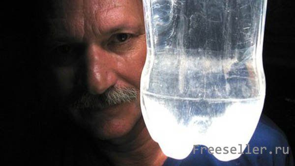 Сам светильник работает благодаря преломлению лучей в воде, а как показали замеры одна 2-х литровая бутылка, дает световой поток 40-60 Вт, если сравнивать с обычной лампой накаливания.