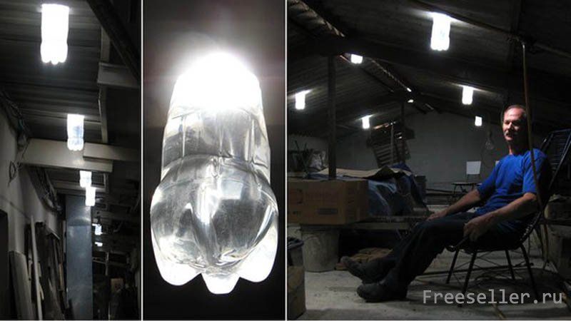 Конструкцию данного самодельного светильника из пластиковой бутылки с водой, предназначенного для освещения жилых домов без использования электричества придумал бразильский механик Альфредо Мозер (Alfredo Moser) еще в 2002 году. С тех пор прошло уже 10 лет, и такие самодельные светильники, работающие на солнечном свете, успешно освещают сотни тысяч домов в бедных странах мира, такие как: Индия, Аргентина, Бангладеш, Финжи, и другие.