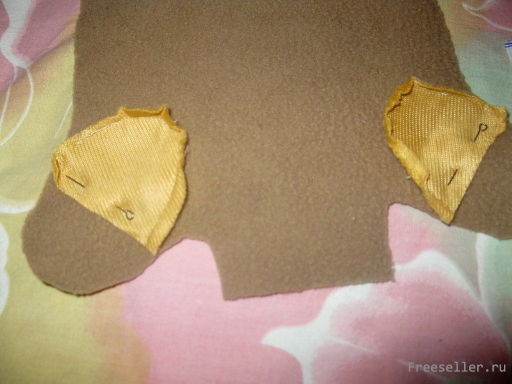 4) сострачиваем по бокам 2 половинки "рукавички-туловища" из основной ткани, потом 2 половинки из дополнительной ткани, накладываем внутреннюю заготовку на внешнюю и сострачиваем места соединения на лапках (чтобы, когда куклу вывернуть, внутренний слой не ерзал);