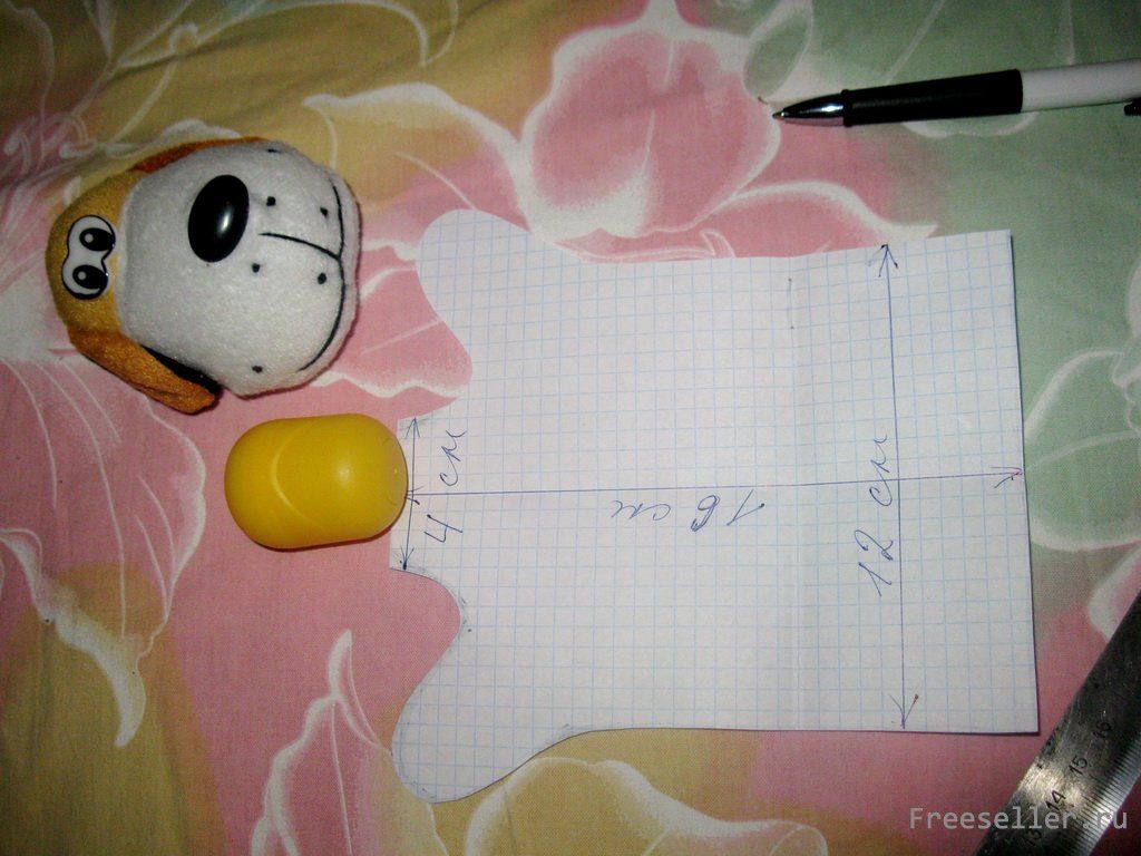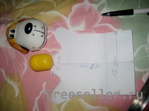 1) делаем чертеж заготовки (по следующей схеме), учитывая, что кукла будет на детскую руку и ширина "шеи должна быть чуть больше диаметра яйца (будет вставляться в дальнейшем для удобства управления "головой" куклы);