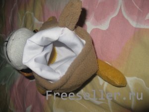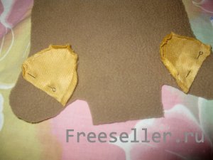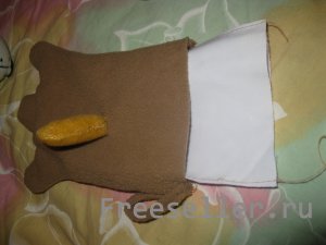 3) на переднюю часть куклы из основной ткани нашиваем лапки, затем соединяем детали хвостика, набиваем его синтепоном и пришиваем к спинке;