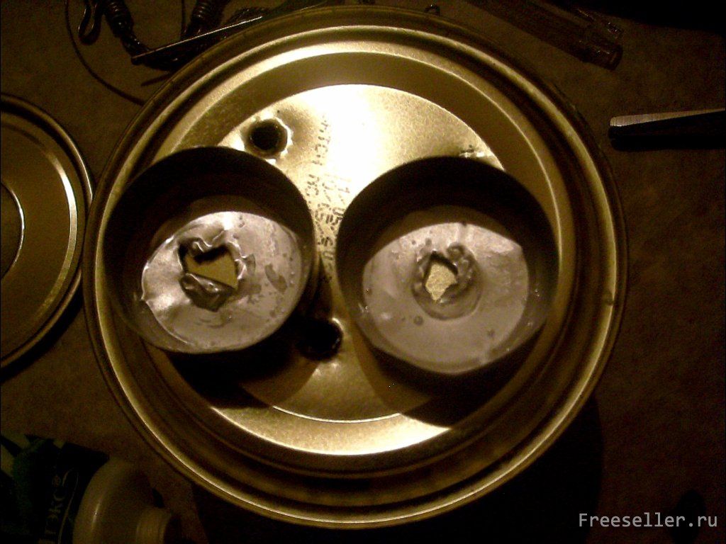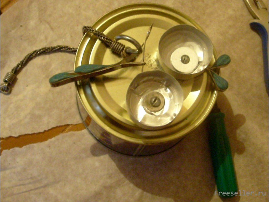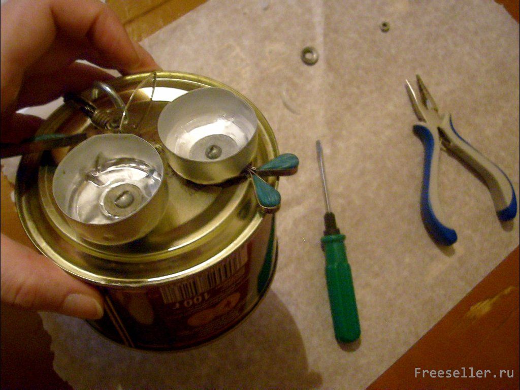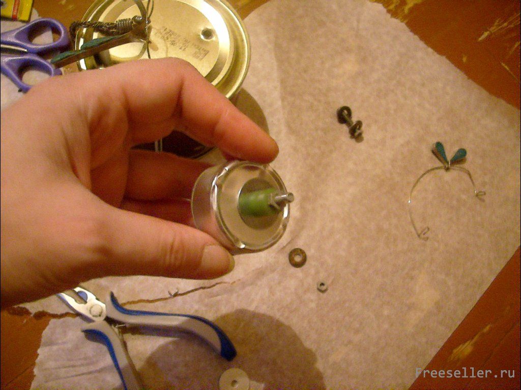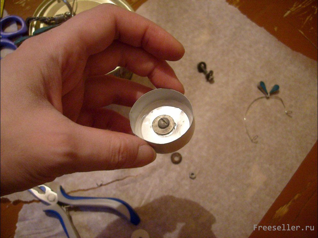 Второй прикручиваем прямо к поверхности (дну банки), фиксируя между ними серёжки.