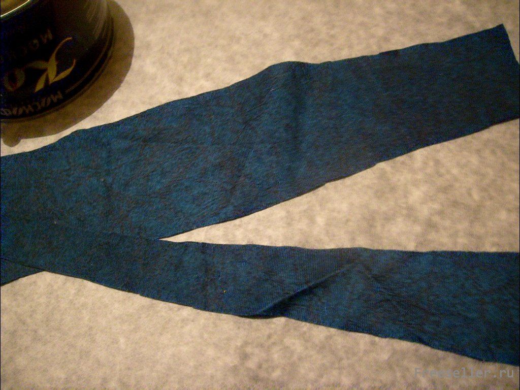 Вырезаем из ткани полоску шириной с высоту банки и длиной чуть больше периметра дна банки, чтобы оклеить стенку внахлёст.