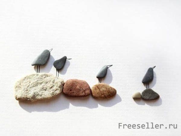 Необычное применение можно найти даже обычным камешкам голышам привезенным с моря, сделав из них вот такие вот замечательные картины.