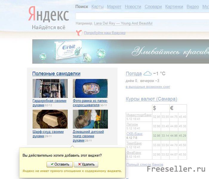 Нажимаем и смотрим. Открывается Главная страница Яндекса, и Вам предлагают сохранить виджет. Теперь (если Вы согласились оставить виджет) заходя на главную страницу Яндекса Выбудете видеть последние добавленные