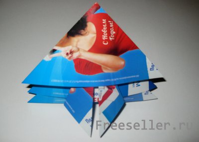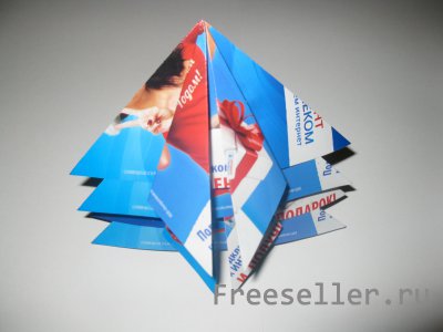5) выходящие за основание основного треугольника кончики загибаем в разные стороны (нужно для устойчивости елки);