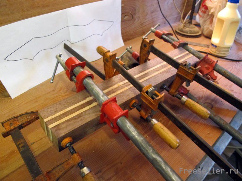 Итак, теперь у вас есть ровный брусок из цельного дерева (или склеенный), пришло время вырезать шаблон и приклеить его к дереву.