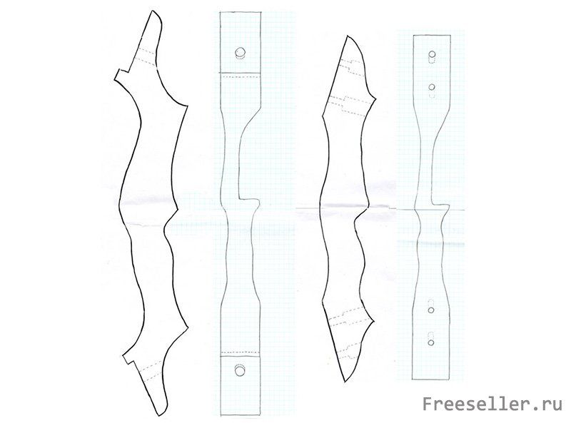 Разборный лук включает в свою конструкцию два плеча, которые прикрепляются к обеим сторонам рукояти с помощью гаек. На рукояти должны быть две плоские поверхности для крепления плеч, место для хвата рукой, и полка-вырез для прохода стрелы. Рукоять не должна гнуться (совсем!) во время использования лука! Пока лук удовлетворяет этим трем условиям, не имеет значения, как он будет выглядеть. Сейчас есть хорошая возможность проявить свои творческие способности.