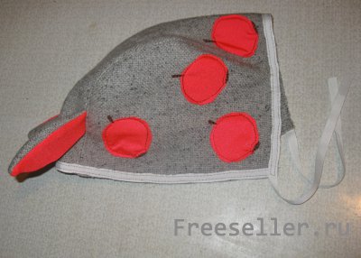 5) сострачиваем боковинки шапки с серединой, не забывая вставить ушки;