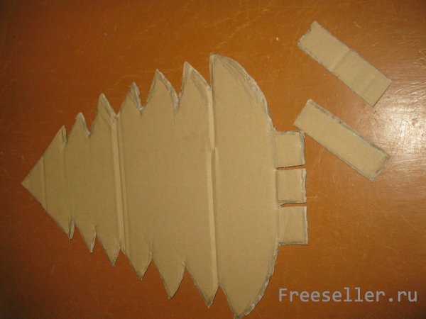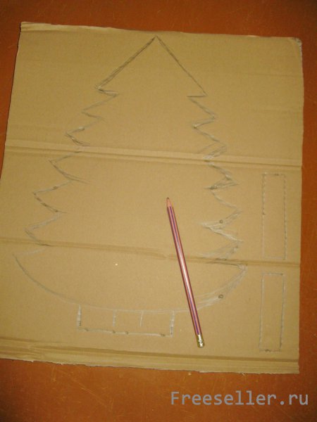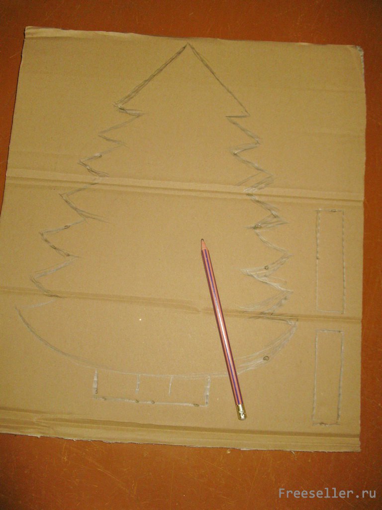 1) намечаем на картоне силуэт елки с широкой "ножкой" внизу;