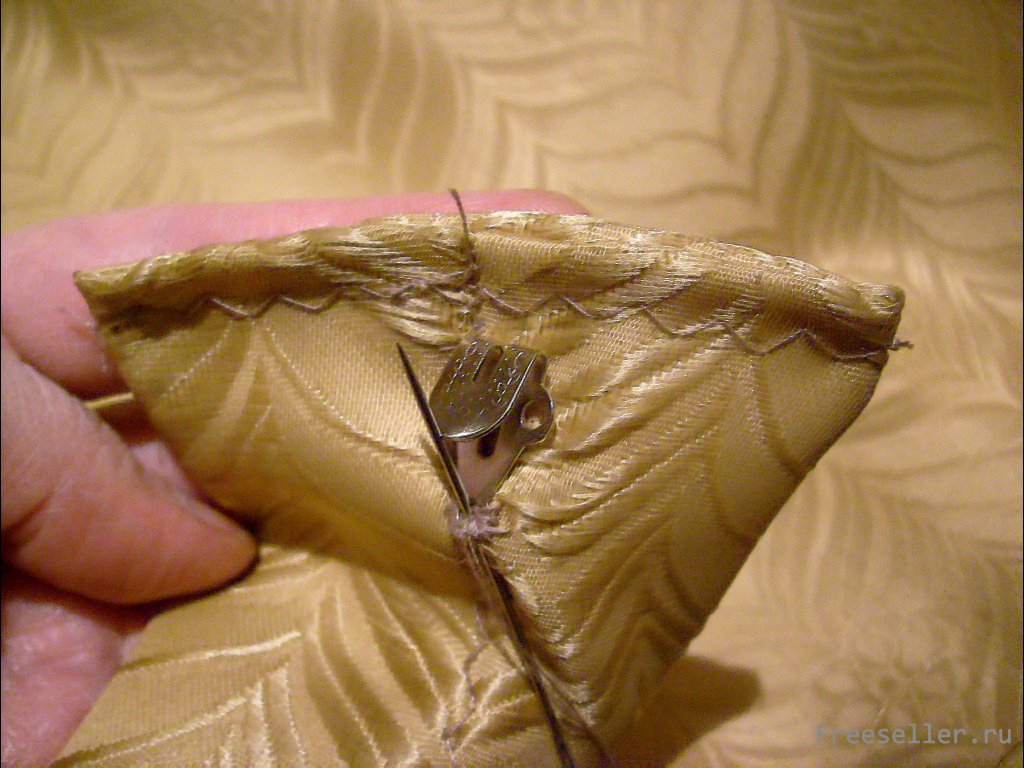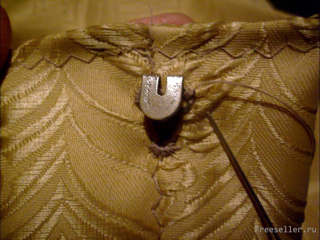 Крючки пришиваем с внутренней стороны петель, по длинному продольному шву, отступив около 1,5 см вглубь, чтобы застёжки не были видны.