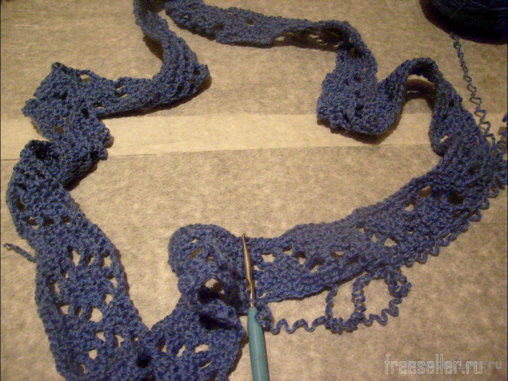 Мы связали её в два ряда - сначала арки из воздушных петель, затем из арок через одну зубцы столбиками с двумя накидами.