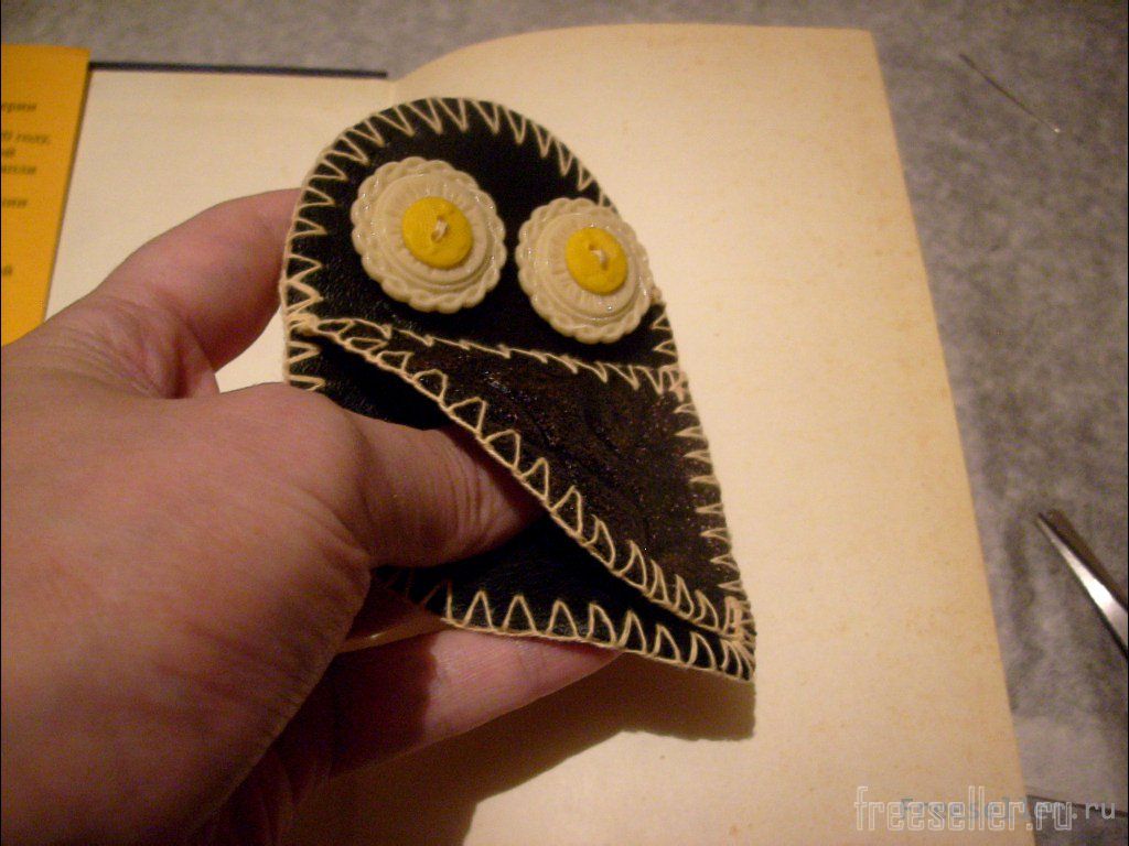 Книжная закладка-сова своими руками. Из обрезков дерматина, клеёнки или любой плотной ткани (да даже из картона) можно легко и быстро смастерить оригинальную закладку для книг. А чтобы она смотрелась интереснее, лучше придать ей вид, например, птицы. Будет сидеть у вас на странице, как на жёрдочке.