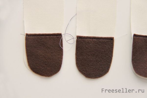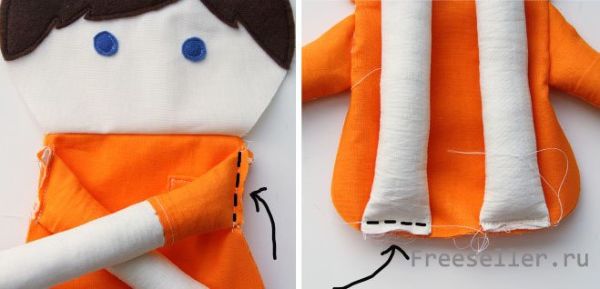 2. Пристрочите рукава к деталям рук, обувь - к деталям ног.