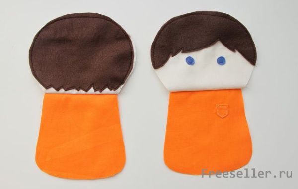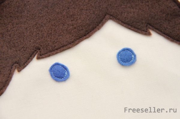 3. На деталь головы пришейте фетровые заготовки волос и глаз.