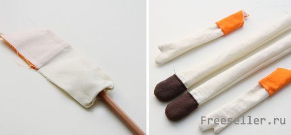 6. Выверните детали конечностей и наполните их синтепоном или ватой.
