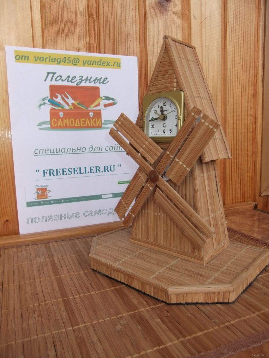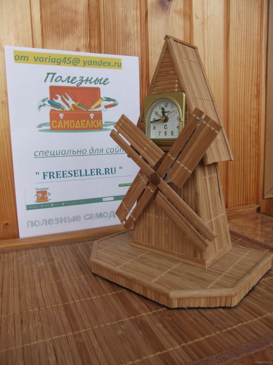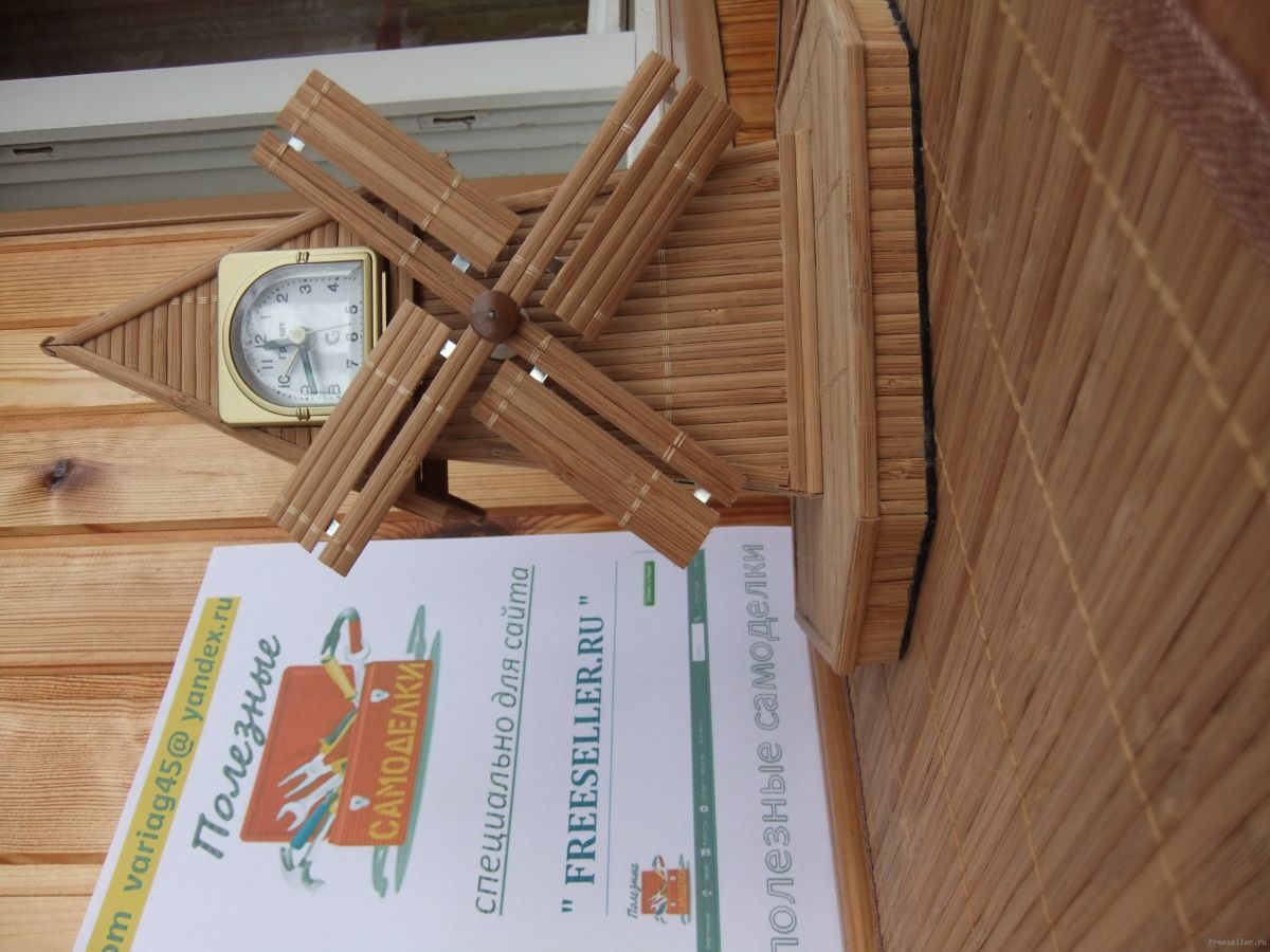 Как сделать оригинальные часы под вид действующей ветряной мельницы из бамбуковой соломки (пластинок).