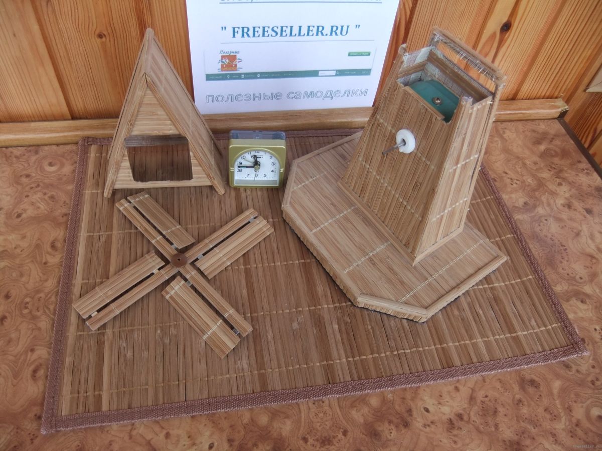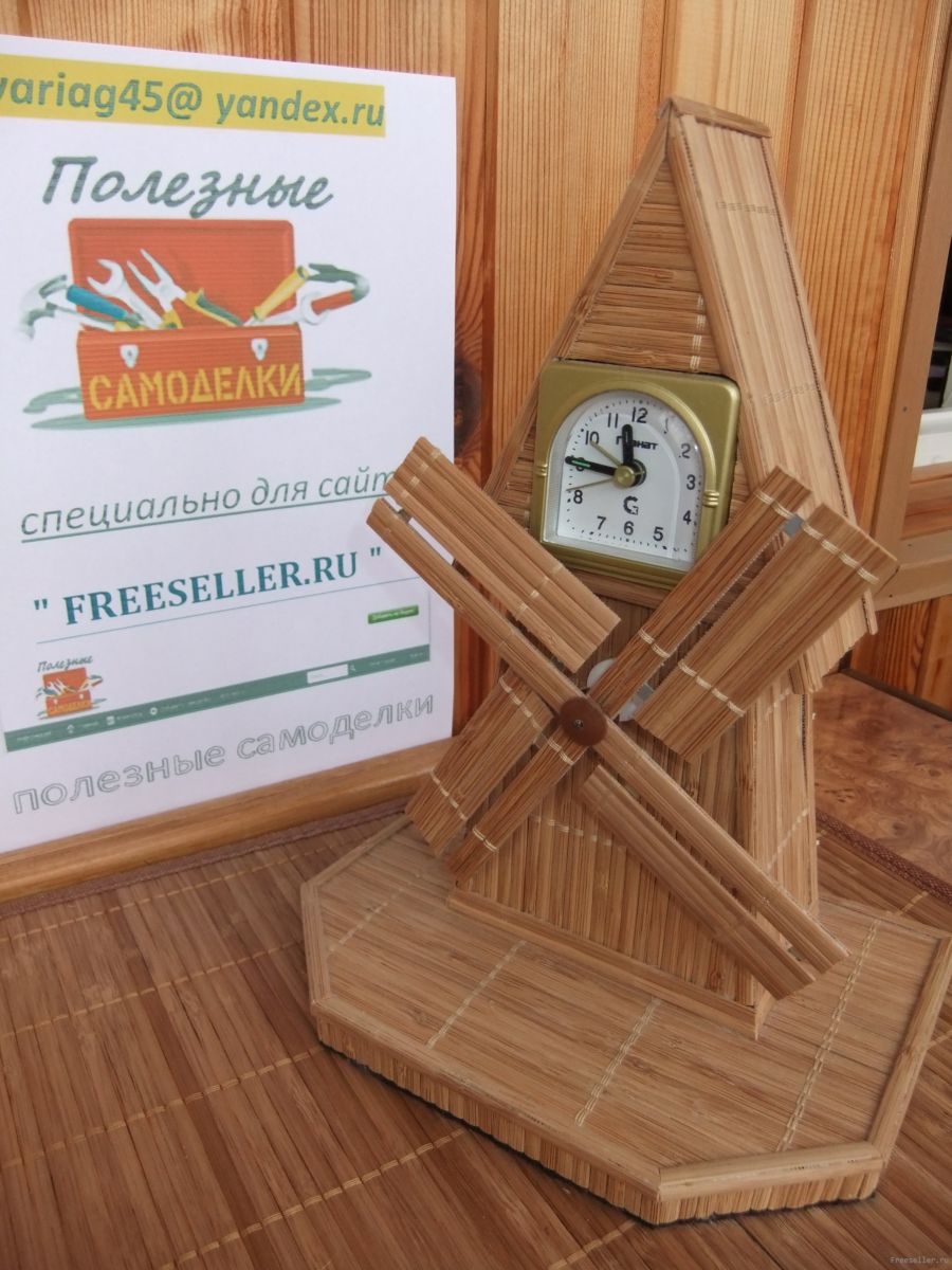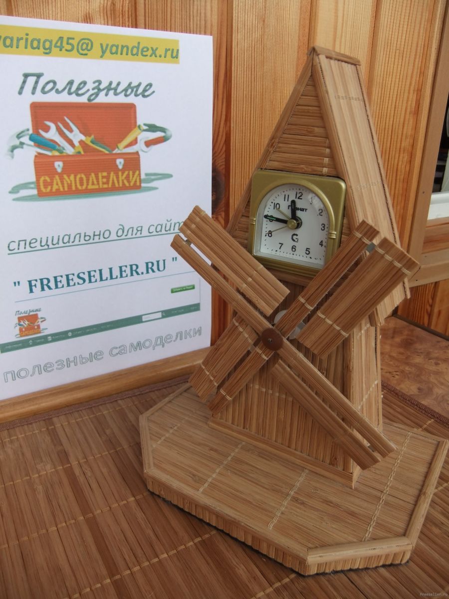 Как сделать оригинальные часы под вид действующей ветряной мельницы из бамбуковой соломки (пластинок).