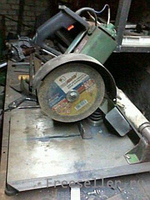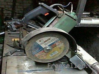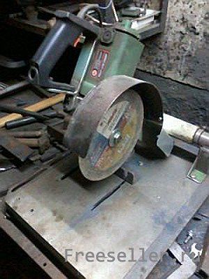 Достались мне в "наследство" от соседа по гаражам болгарка на 230 диск. Двигатель с редуктором, а вместо ручки два провода торчат. Соседу она только мешала, а у меня маленькая болгарка, на все случаи, уже поджуживала о скорой кончине. Ну вот, думаю и подспорье, ведь если нужно порой, что-то большое конструлить, да из профиля 60 на 40, то шлифкой на 150 не очень-то быстро все напилишь. Никого не обижу, если скажу, что все самоделкины-Плюшкины. Так и я. Платформа для нового "девайса" сделана из чугунной половины стола деревообрабатывающего станка. Стойки под ось от китайского плиткореза. Рукоять и кнопки от ручной дисковой пилы. Кожух варил сам. Ну все как то так и срослось в полноценный отрезной. Конечно эстетика где-то бродила, когда я собирал станок, зато функциональность на все 120. Стальную полосу 10 на 60 как маслице.
