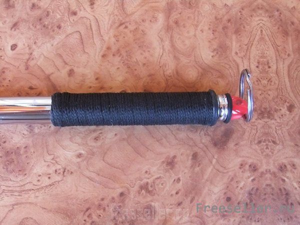 Для изготовления ушло 3 метра черного шнура, кусок хромированной трубки, костяная ложка, наконечник от шариковой ручки или фломастера, металлическое кольцо от ключей и немного клея " момент."
