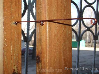 В дверцу окна на том же уровне, что и скобка вбиваем маленькие гвоздики. Все!! Количество промежуточных колец и длину ограничителя определите самостоятельно.