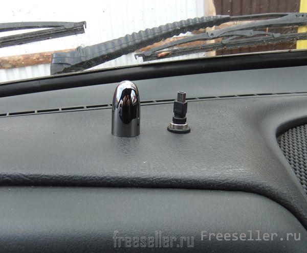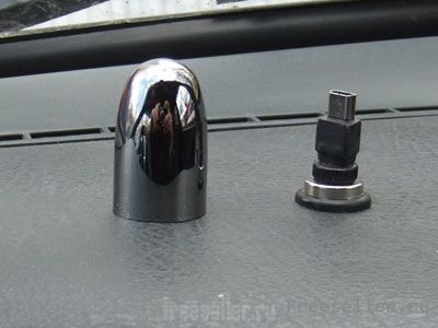 Лишние провода на панели приборов всегда отвлекают и раздражают водителя, а то и вообще путаются под руками. Чтобы избавиться от этого, я просверлил в торпеде небольшое отверстие, вставил гнездо, пропустил в него питающий кабель, который подпаял к обратной стороне прикуривателя через предохранитель. Длину кабеля оставил такой, чтобы ее хватало для подключения к прибору, установленному на ветровом стекле, или ином месте. В нерабочем положении кабель опускается вниз, и разъем прикрывается колпачком.