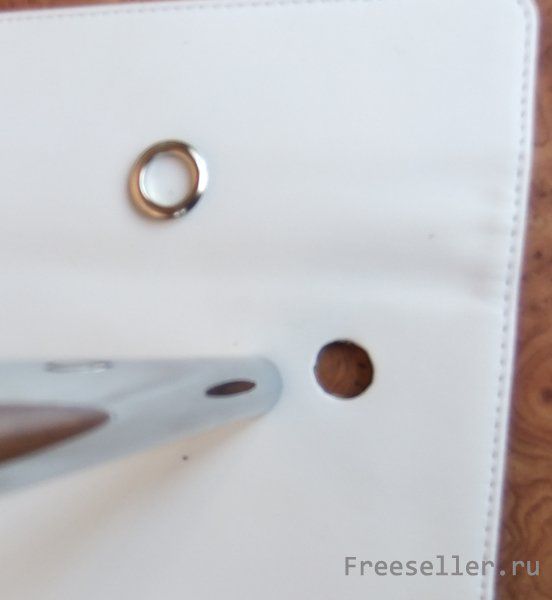 Приклеиваем полученный держатель к стенке чехла и прорубаем отверстие (или два) для фотоаппарата (второе для динамика, кто им будет пользоваться). На отверстие приклеиваем металлическую оправку. К корпусу приделываем крепление для темляка, который будет предохранять планшет от падения. Его можно сделать из кожи,металлической цепочки.