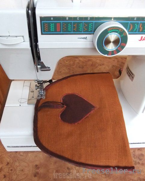 Такие же две детали выкроить и вырезать из синтепоновой прокладки.Все это прошить на швейной машинке, окантовать тканью другого цвета, пришить проушинку для подвешивания.