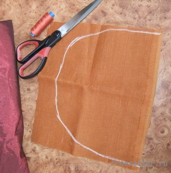 Нужно сложить материал в 2 слоя с запасом на подгиб и сделать выкройку.