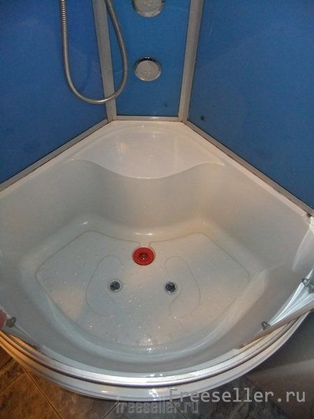 При дорогой цене китайских душевых кабин (а купить итальянскую большинству не под силу ввиду нашей скромности) качество их очень низкое. Основные неприятности подстерегают из-за применения дешевых хромированных сплавов вместо нержавеющей стали. Исключив все подтекания и протекания в подводах воды в кабину - основная неприятность ожидает в отводе воды. Это горловина с пружинным клапаном! Через 1,5 года пользования он просто вывалился, окислившись и разрушившись полностью. Получился такой вот видок.
