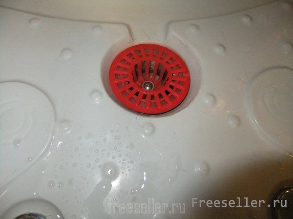 Теперь решетку легко достать и очистить, а вместо пружинного клапана, если нужно набрать воды, использовать обычную сантехническую резиновую пробку.