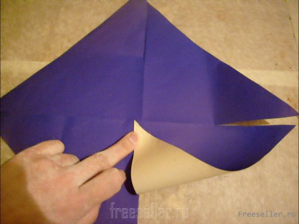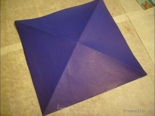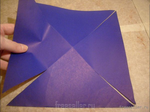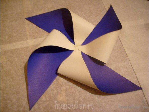 Основа такой вертушки - квадрат. Вырезаем его. Сгибаем по диагоналям.
