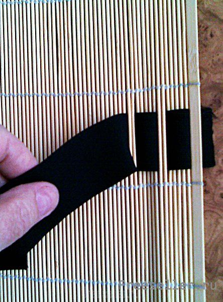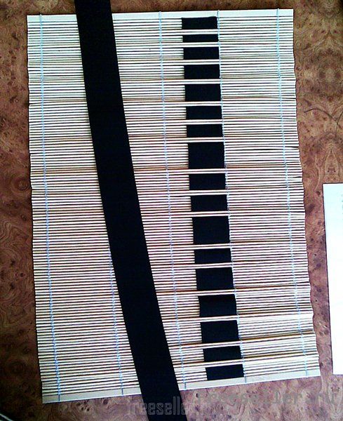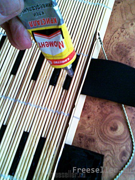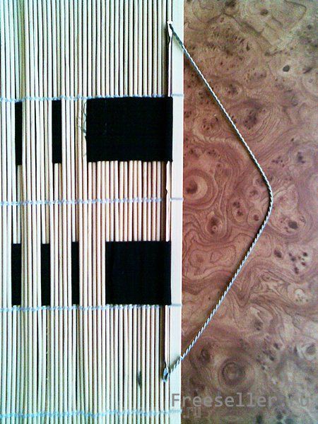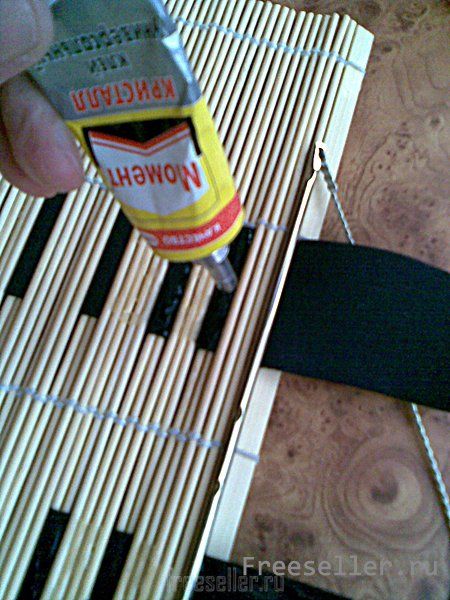 Берем салфетку из бамбуковой соломки, два куска черной резинки и два куска проволоки. Еще понадобится клей.