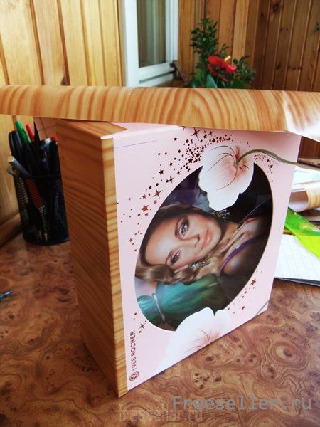 и закрепляем на нижней заглушке клеем. Желательно фотографию немного выгнуть и закреплять на крышке под небольшим углом.
