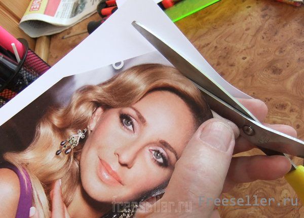 Фотографию приклеиваем к тонкому картону, вырезаем по контуру.