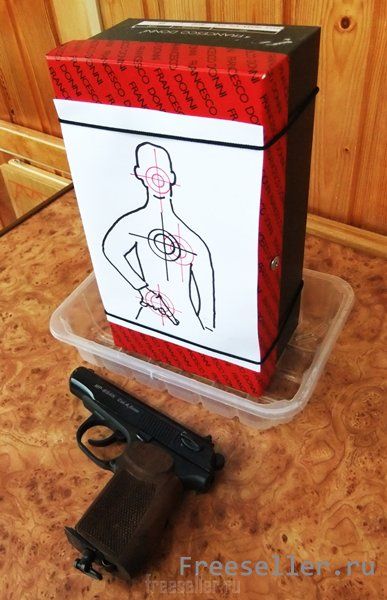 Соответственно понятно, что пистолет с шариковыми (или Диаболо) пульками имеется. Мишени можно самим нарисовать, как я сделал, или распечатать на принтере с интернета.