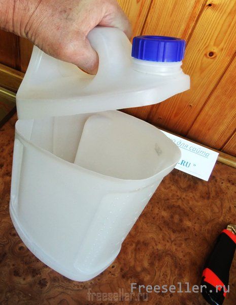 На канистре делаем разрез вот таким образом. Оставьте перемычку, которая будет служить вместо шарнира.