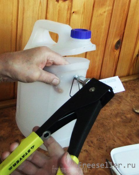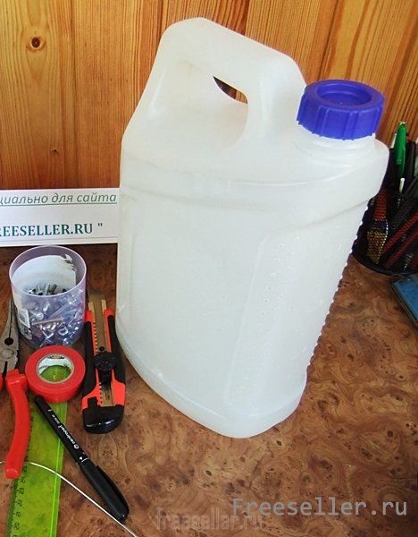 Работы - минутное дело, а пользоваться будете долго. Канистру, например от охлаждающей жидкости, или чего-то подобного найти не проблема. Из инструментов понадобится нож, кусок сталистой проволоки диаметром 2 мм (я использовал спицу от старого зонта) винт с гаечкой и пара шайб, отвертка.