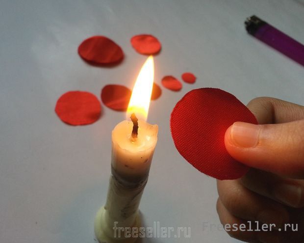 Зажигаем свечу и на огне обжигаем края всех элементов, чтобы кружочки немного завернулись.
