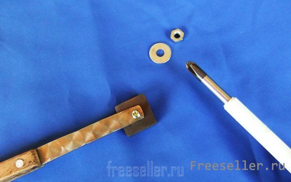 Для этого делаем сами или подбираем подходящую ручку, приобретаем или заимствуем у знакомого токаря плашку для обработки металла и находим винт с гаечкой и шайбой.