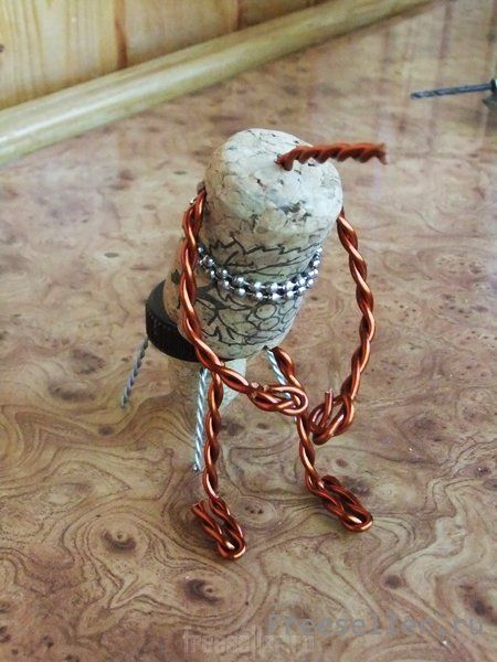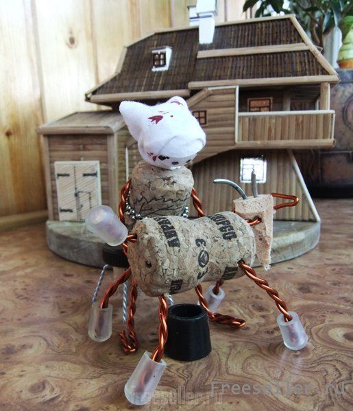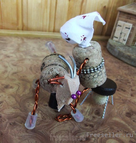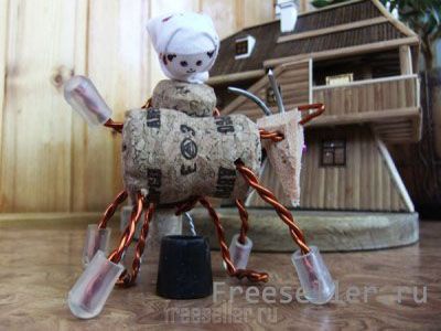 Туловища с ногами и руками получились - дело за головами. Для козы тоже из пробки вырезаем.