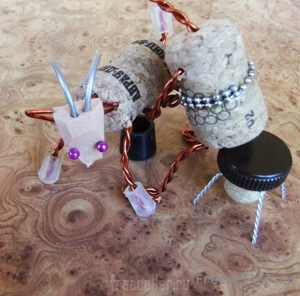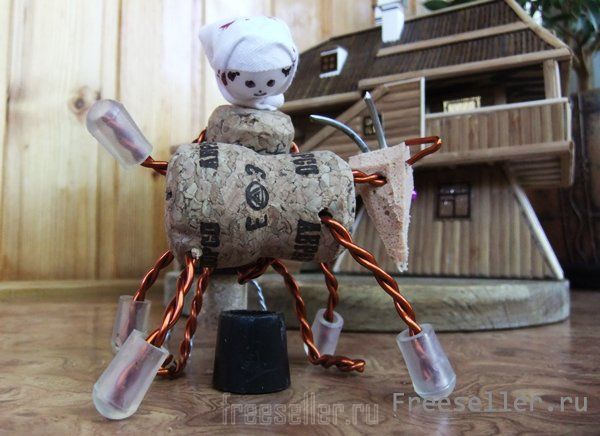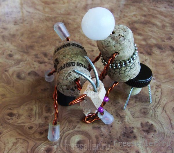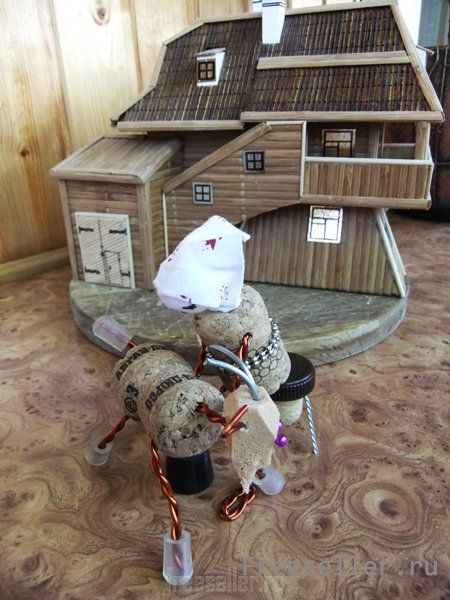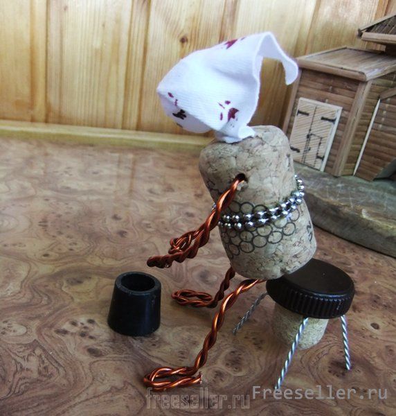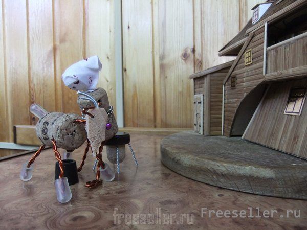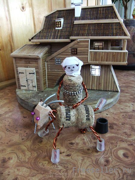 Делаем своими руками композицию из пробок и проволоки на тему "деревенской жизни": стульчик, козу, хозяйку.
