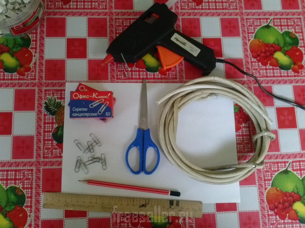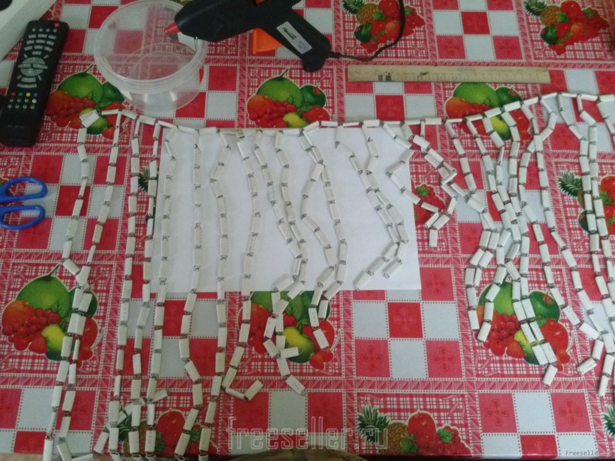 Красивая самодельная занавеска на дверь из антенного кабеля и скрепок.