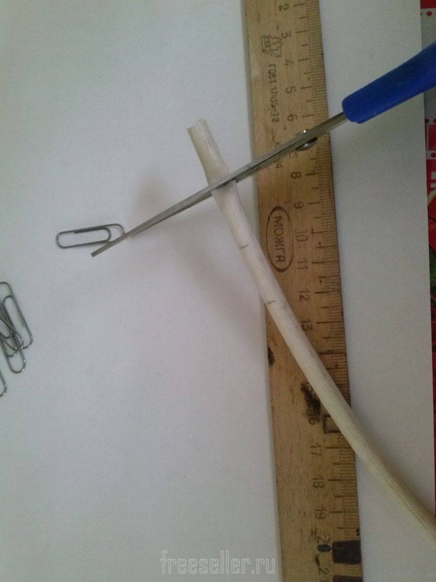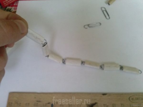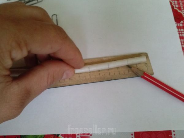 Затем прикладываем полученную трубочку к линейке и размечаем карандашом по 2 сантиметра как показано на фото ниже.