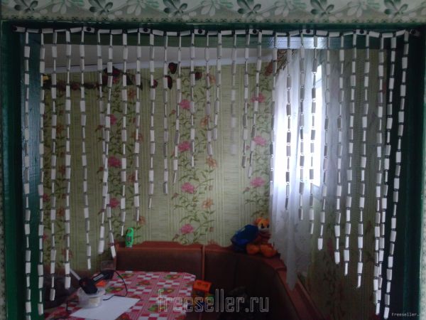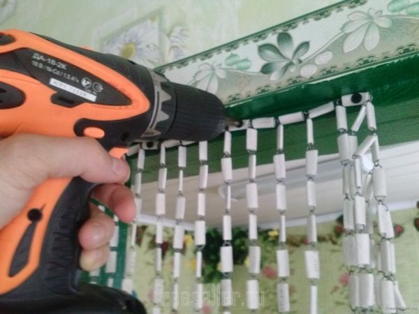 И в конце прикрепляем занавеску в нужном нам месте, я лично прикрепил ее в дверной проем летней кухни при помощи шурупов. Так же ее можно вешать и на окна, да и вообще, куда только захотите.
